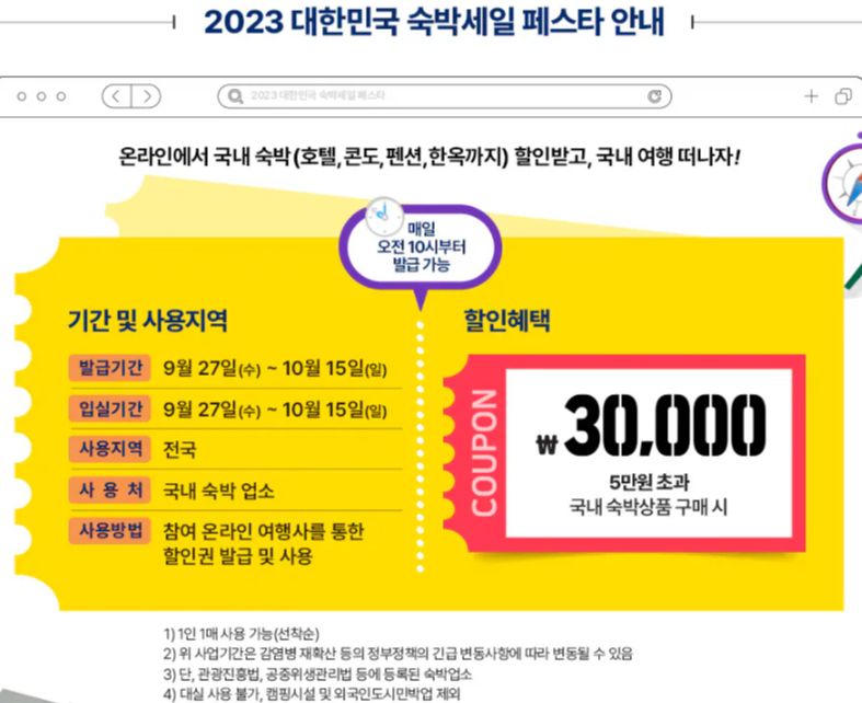 또한 다음 달 10월 27일에도 숙박페스타 이벤트가 준비되어 있으니 즐겨 찾기 해두시고 종종 확인해 보시면 좋을 것 같습니다.