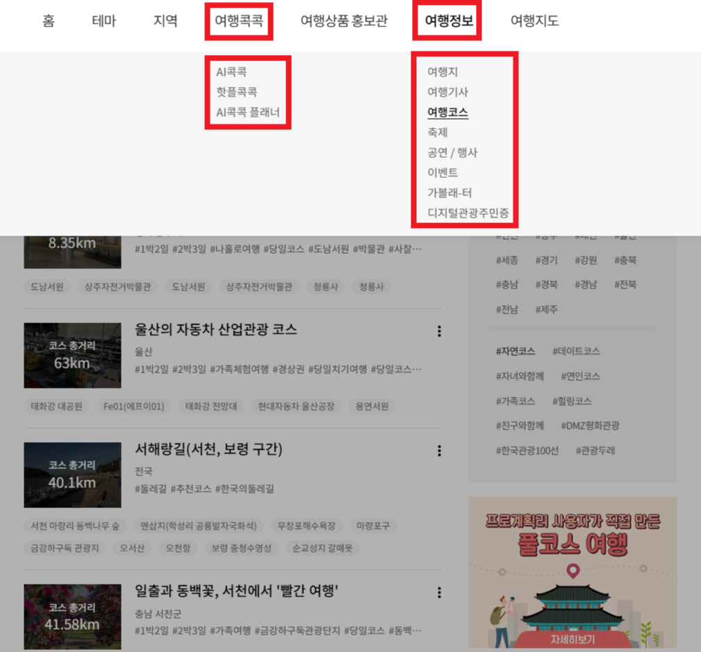 지역별로 갈만한 여행지나 추천코스들도 있고 현재 축제 중인곳들도 한 번에 알아볼 수 있고