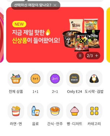 배달하기 에 들어가면 1+1 , 2+1 등 행사상품등만 모아서 볼 수 있고 이번에는 일부매장만 행사를 진행하기 때문에