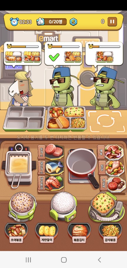 처음에는 게임을하는데 조금 어려운느낌도 있는데 반복되는 그림들도 많고 음식도 만드는게 똑같다보니 천천히 하면 다깰수있게끔 만들어놓은거 같더라구요