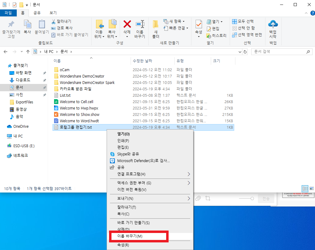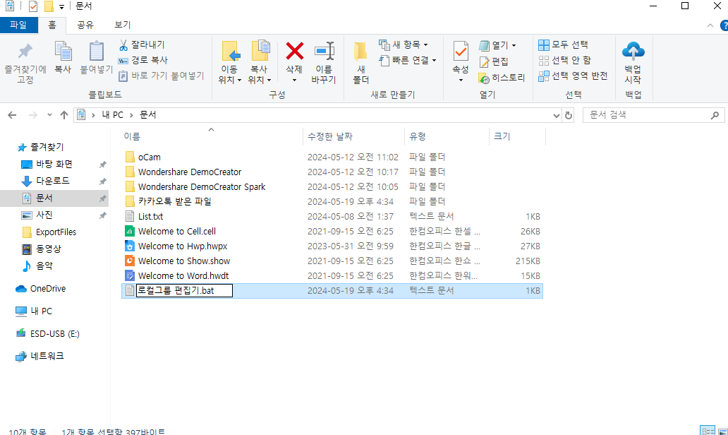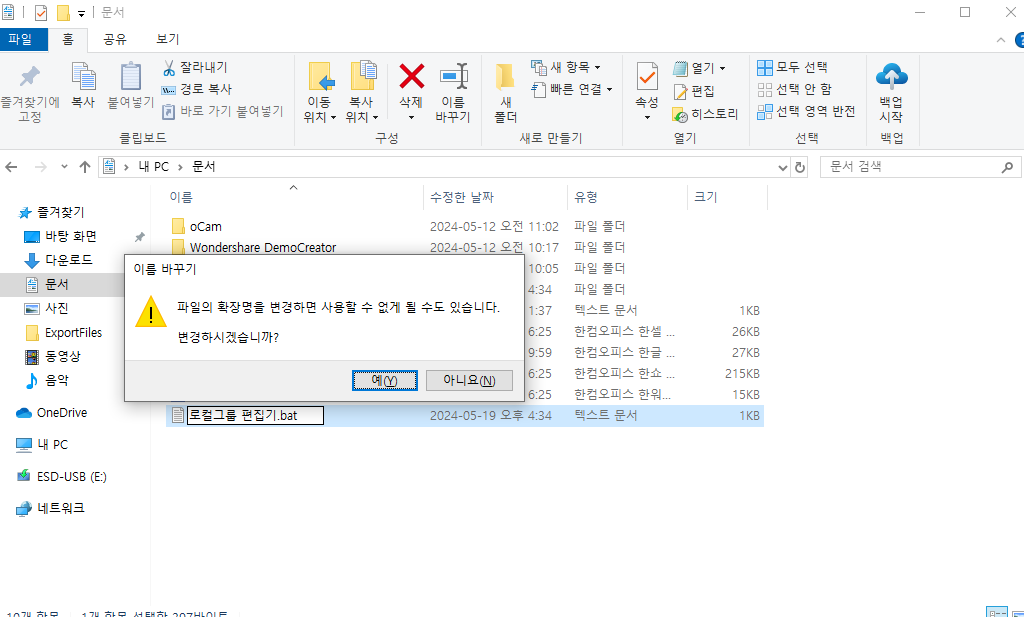 파일이름은 아무렇게나 해도 상관없고 뒤에 txt 문서 이름을 bat 로 변경해주세요