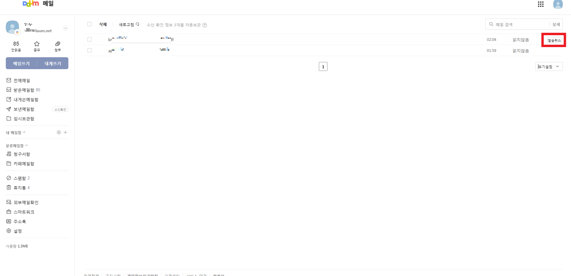 3. 발송한메일 발송취소