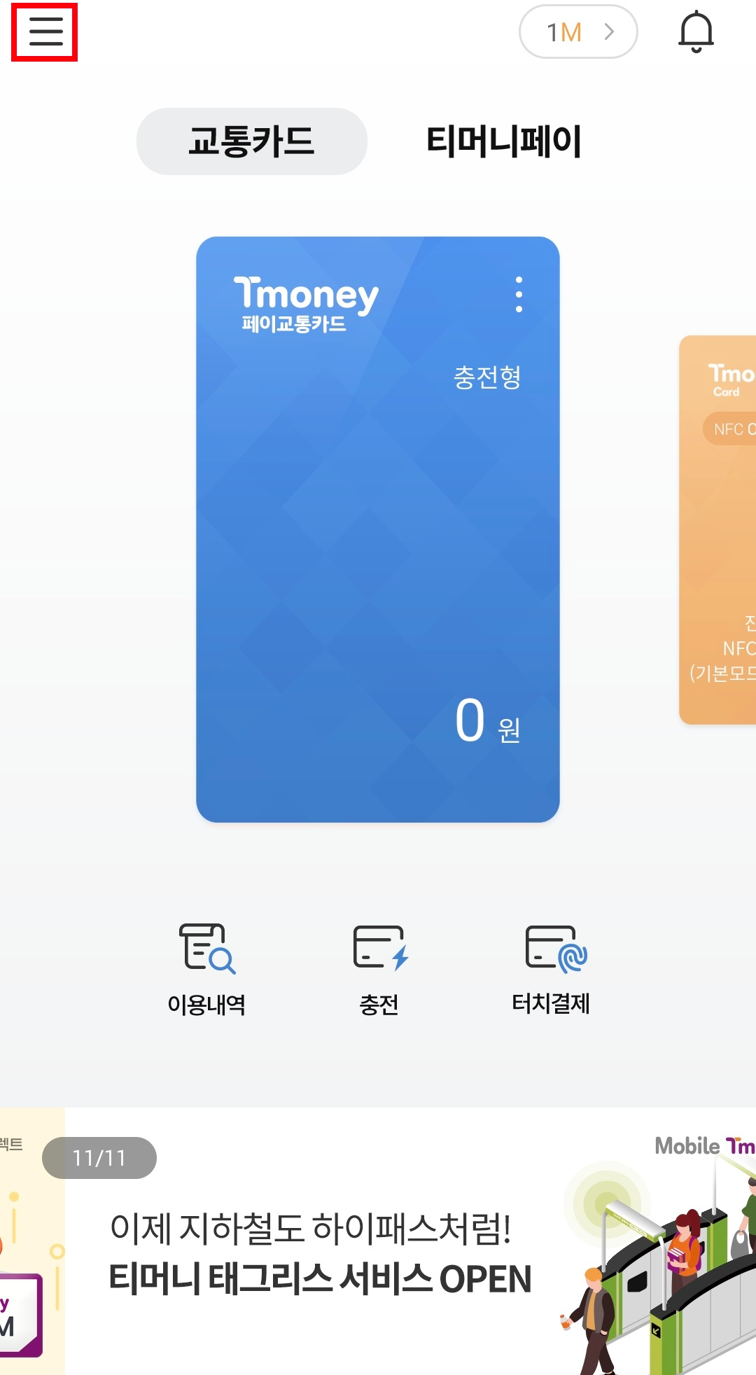 1. 모바일티머니 사용하기 : 모바일티머니는 핸드폰에 내장되어 있는 유심이 교통카드기능을 합니다.