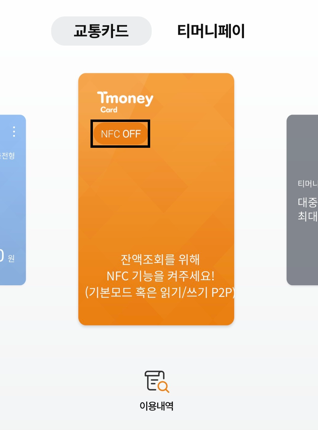 NFC 기능을 켜두시면 모바일티머니 (핸드폰유심)으로 결제가 가능합니다.